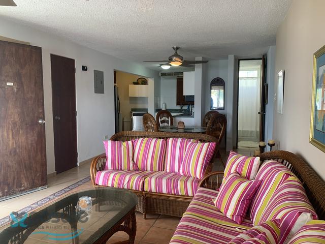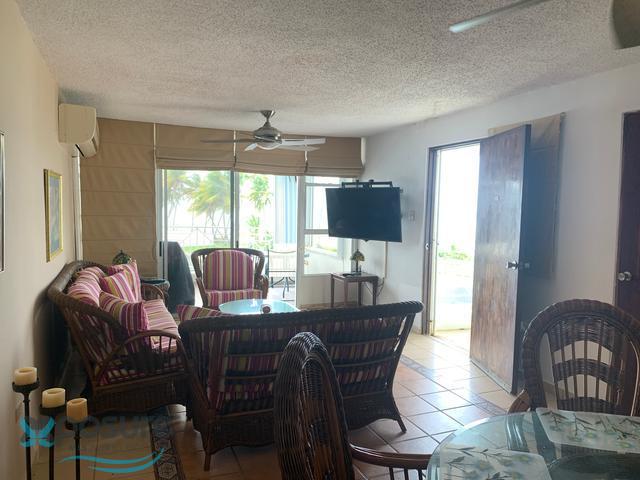 Walk up. Frente a la playa. Vista al océano. Terraza. Listo para mudarse. Totalmente amueblado y equipado. 3 estacionamientos. 2 areas de almacén, 1 en estacionamiento, 1 en apartamento. Cocina de buen tamaño. Vista al mar desde el dormitorio principal. No se permiten alquileres a corto plazo. Guardia 24/7. Instalaciones del edificio recién pintadas y en muy buen estado. Cerca de Campos de Golf y Bahia Beach Resort and Golf Club. HOA $255 mensuales. Seguro Máster Anual $1771.19. Impuesto a la propiedad $ 1400 anuales. 18.4164089,-66.0590667..