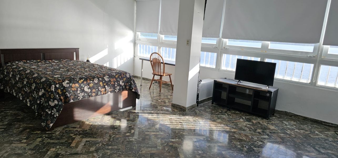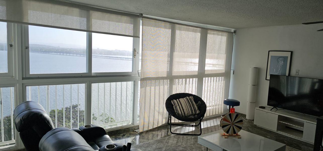 Cómodo penthouse de dos niveles con vista panorámica a la laguna. Tiene 3 habitaciones y 3 baños.