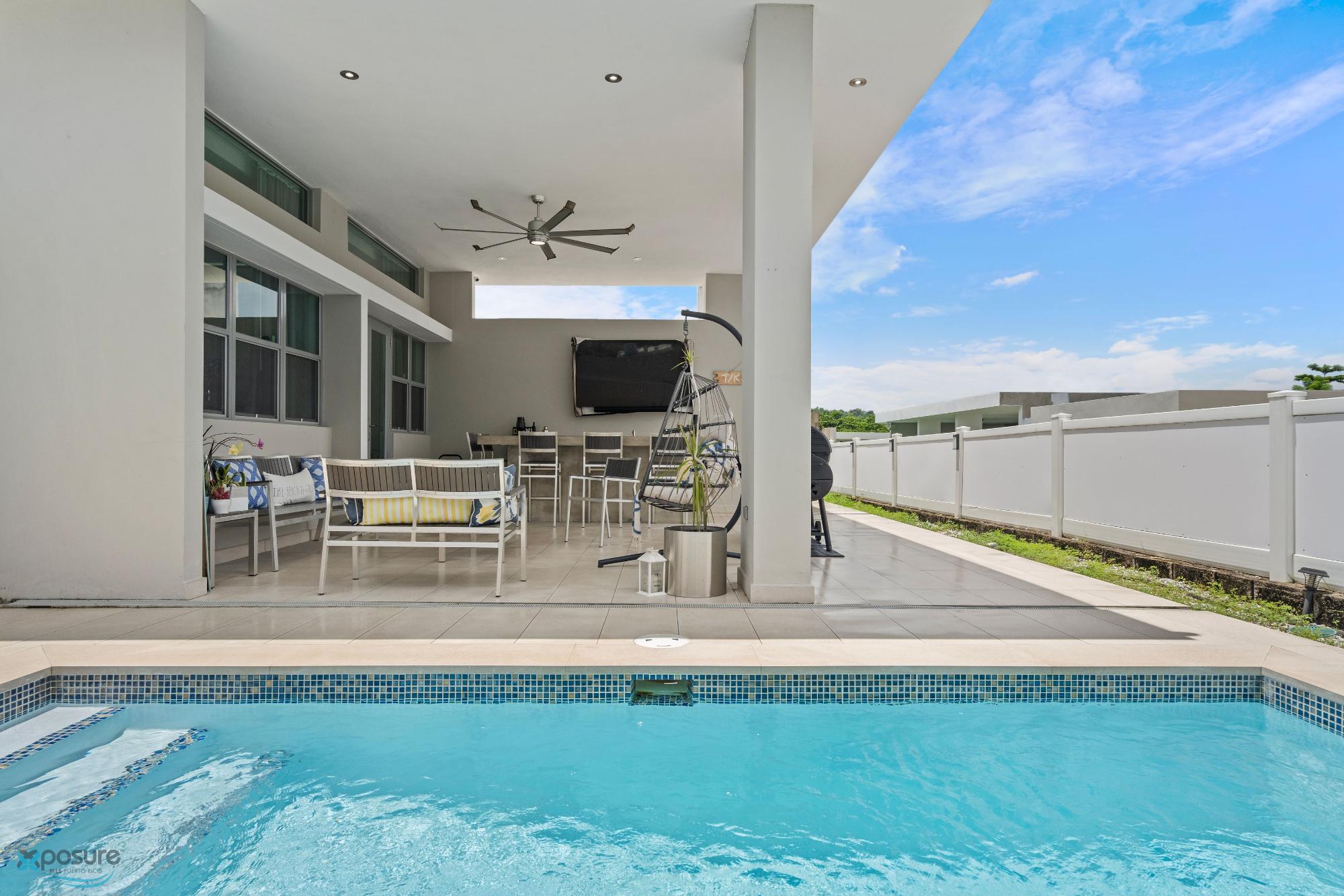 Montecielo, Guaynabo. Casa de una sola planta con 4 dormitorios, 2 baños completos y 2 medios baños. El concepto de espacio abierto es ideal para reuniones y para entretener a familiares y amigos. Complementada con una terraza completa, un bar y una piscina con calentador inverter, la casa tiene el ambiente perfecto para barbacoas, fiestas o relajación. Un sistema fotovoltaico cuenta con 24 paneles solares y una batería Tesla que garantiza electricidad de respaldo en todo momento. Esta comunidad privada cuenta con gimnasio, piscina, parque, tenis, pickleball, tenis de playa y media cancha de baloncesto para su disfrute. No se olvida a todos los seres queridos de 4 patas, hay un enorme parque para perros para jugar y hacer ejercicio. Esta es una de las pocas casas disponibles con estas características en el área. ¡Llame para hacer una cita y venga a visitarnos!..