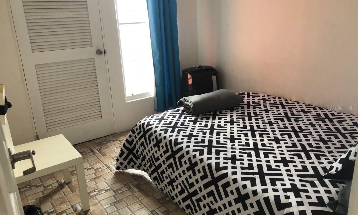 This could easily be converted to a 2/1 with the over sized rear bedroom (exterior door) becoming a studio apt. for rentals to continue income & live in the front!