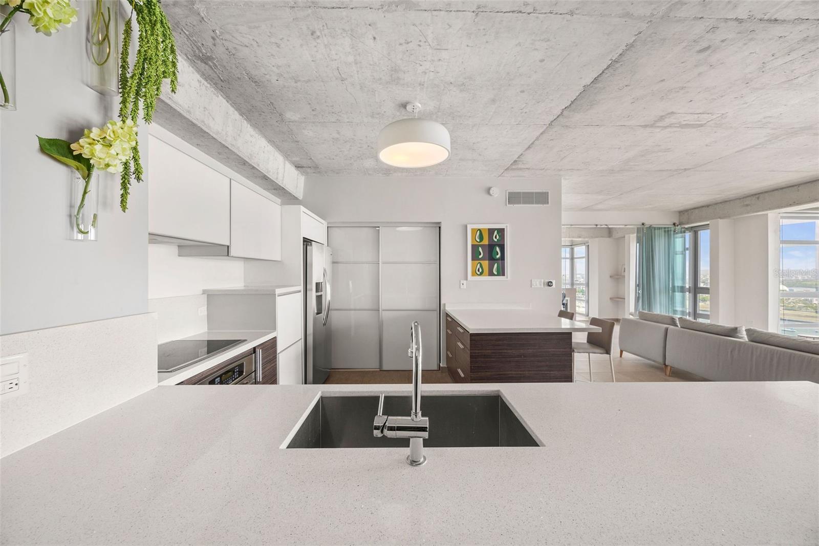 Furnished and fully equipped with central air conditioning, this stunning unit features two bedrooms, two full bathrooms, and two walk-in closets. The open kitchen is a chef’s dream, complete with stainless steel appliances and an extensive island, perfect for both everyday living and entertaining, all while offering inspiring views.