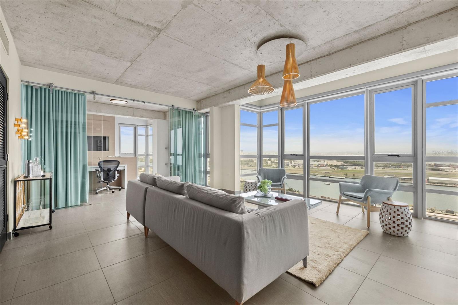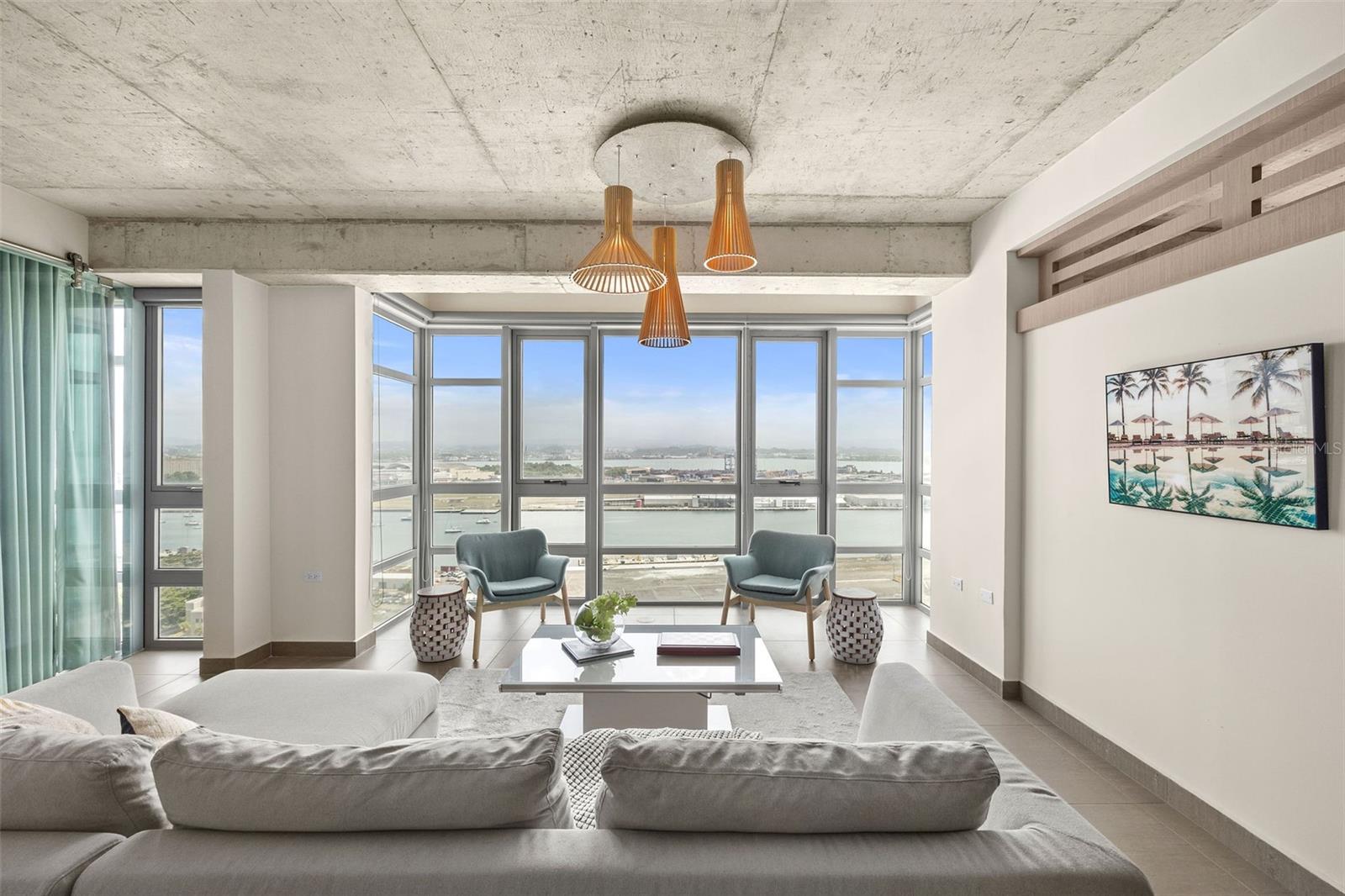 Experience breathtaking panoramic views from this exquisite 1,208 sq. ft. corner unit on the 19th floor of Atlantis Condominium. This high-rise residence offers spectacular southeast vistas, including views of cruises and yachts in the San Juan Marina, the Condado Lagoon, El Yunque Rainforest, the Atlantic Ocean, and the vibrant cityscape.