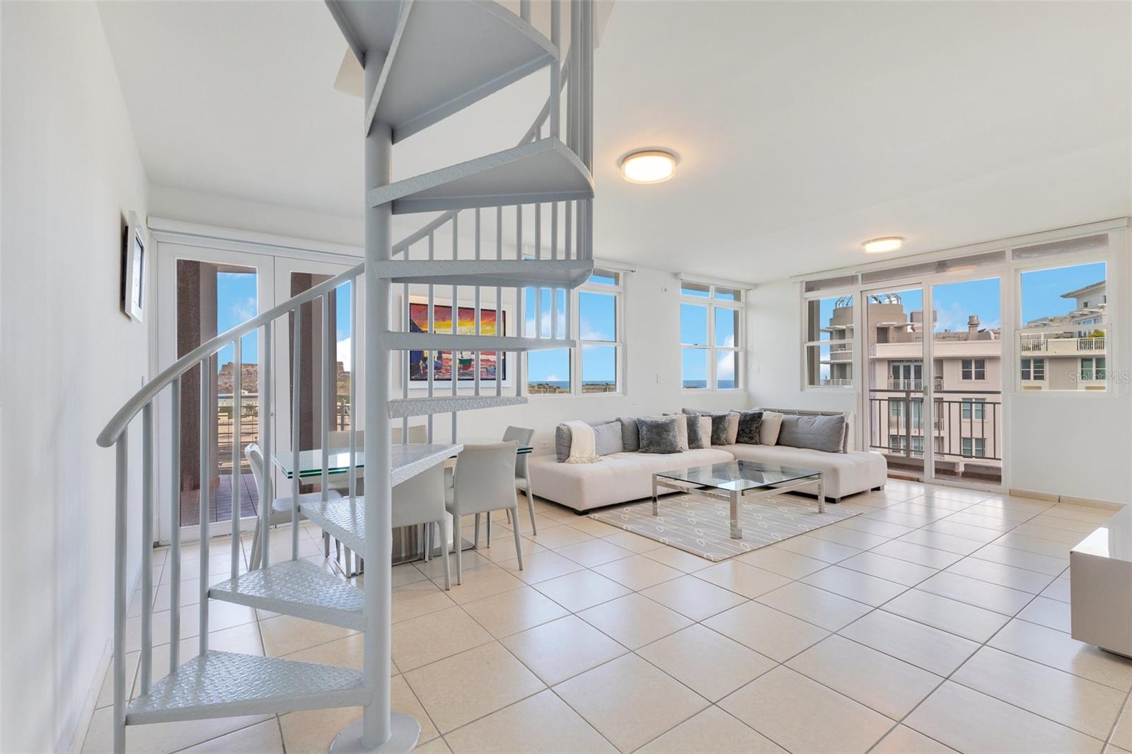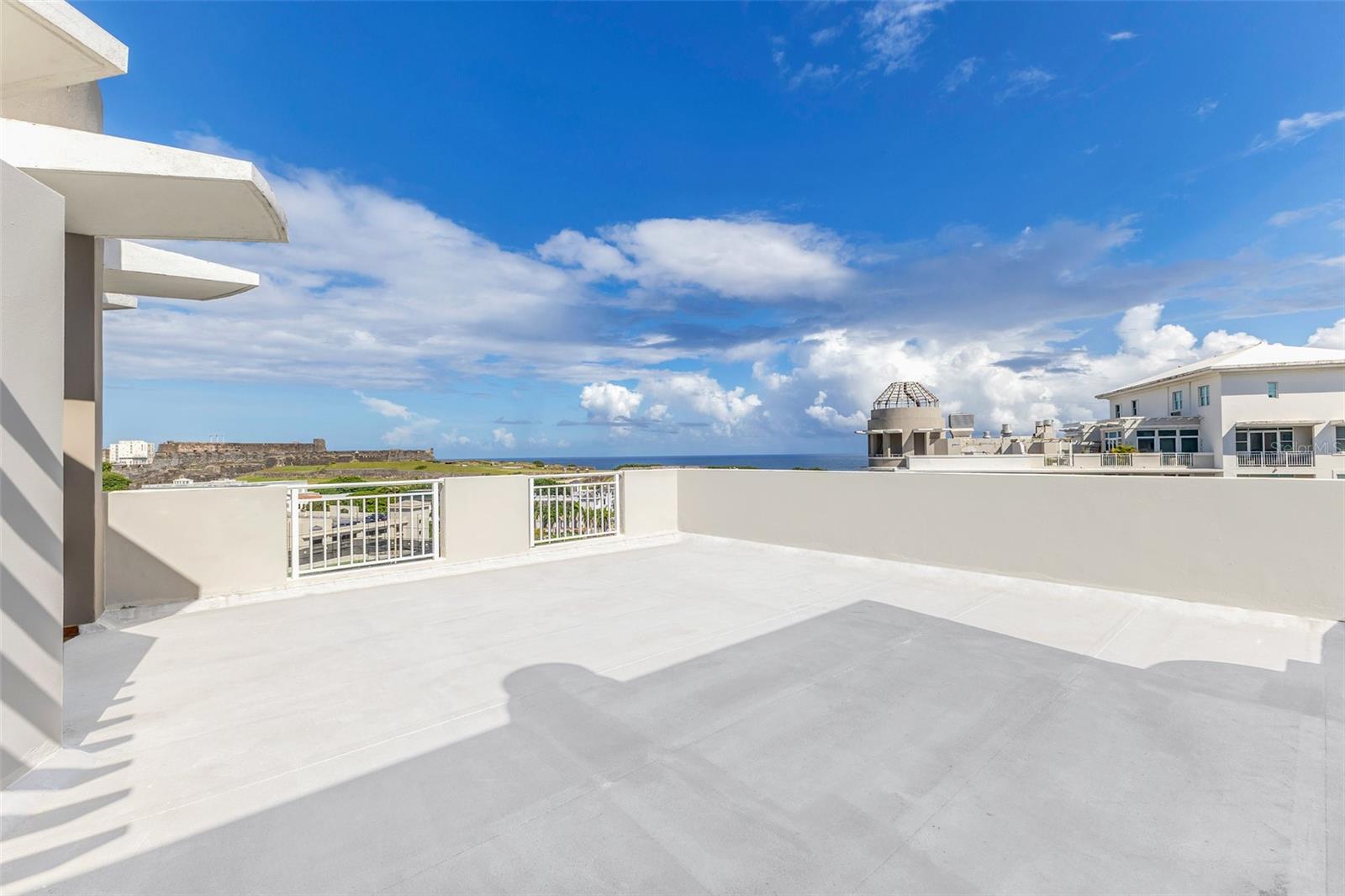 Enjoy elevated coastal living in this spacious two-level penthouse in Old San Juan offering 2,589 SqFt of total area, including 1,799 SqFt of interior space and a 790 SqFt private rooftop terrace ideal for entertaining. The residence features three bedrooms — highlighted by a primary suite with walk-in closet and en-suite bath — and comes fully furnished with a kitchen nook, powder room, and laundry room. Panoramic views overlook the Atlantic Ocean and the historic Castillo San Cristóbal.