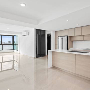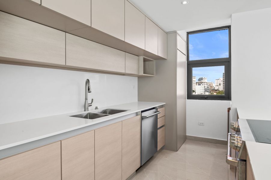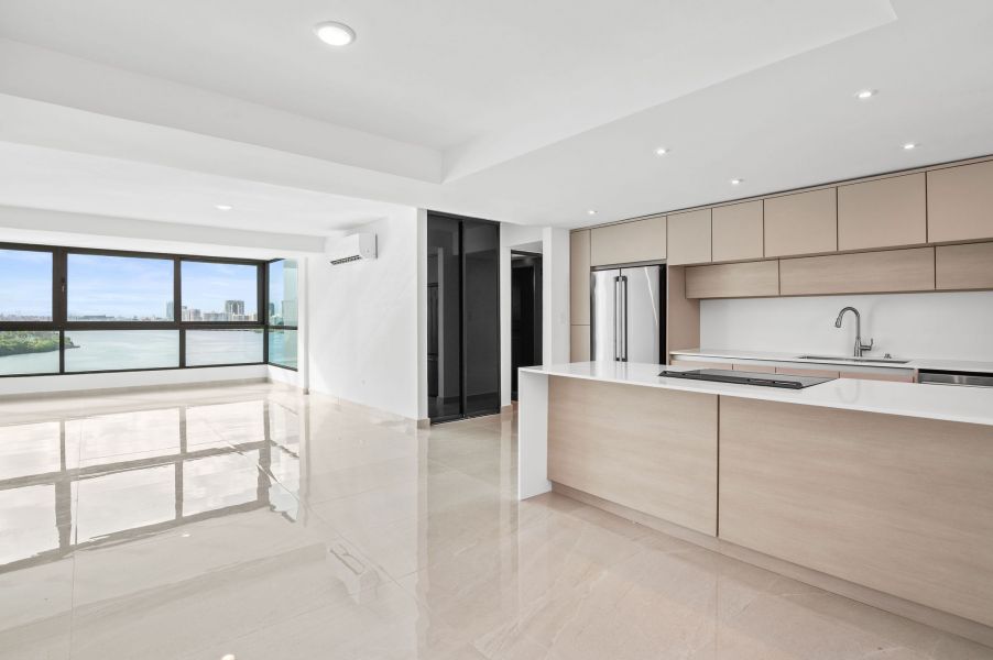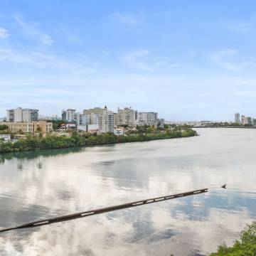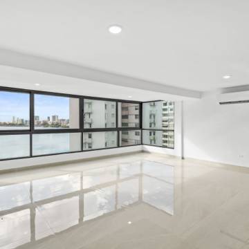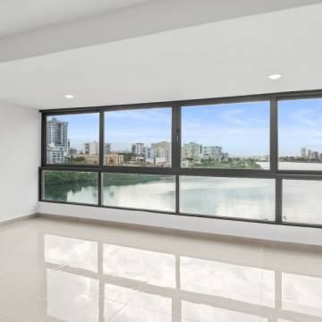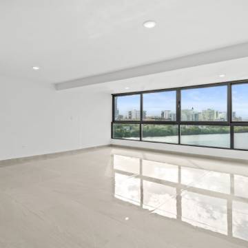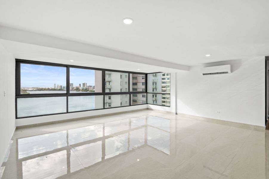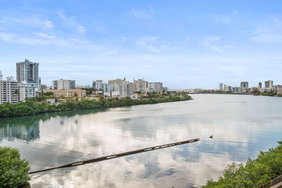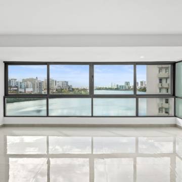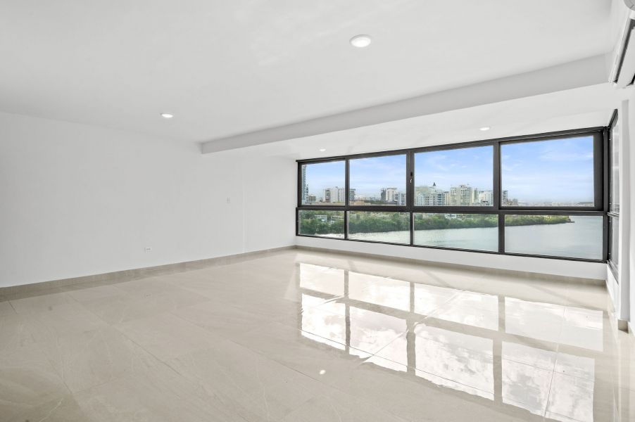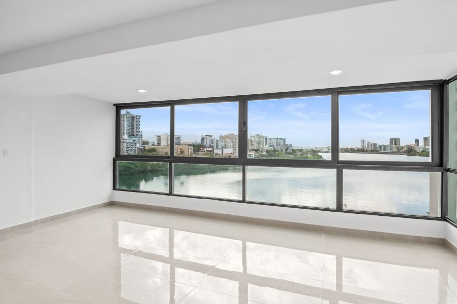 Desde el momento en que entras, la propiedad te recibe con una vista espectacular hacia la Laguna del Condado. Un ventanal amplio enmarca el paisaje como si fuera una obra de arte: el agua serena, el skyline elegante y la luz natural creando una escena que parece pintada en un cuadro.
