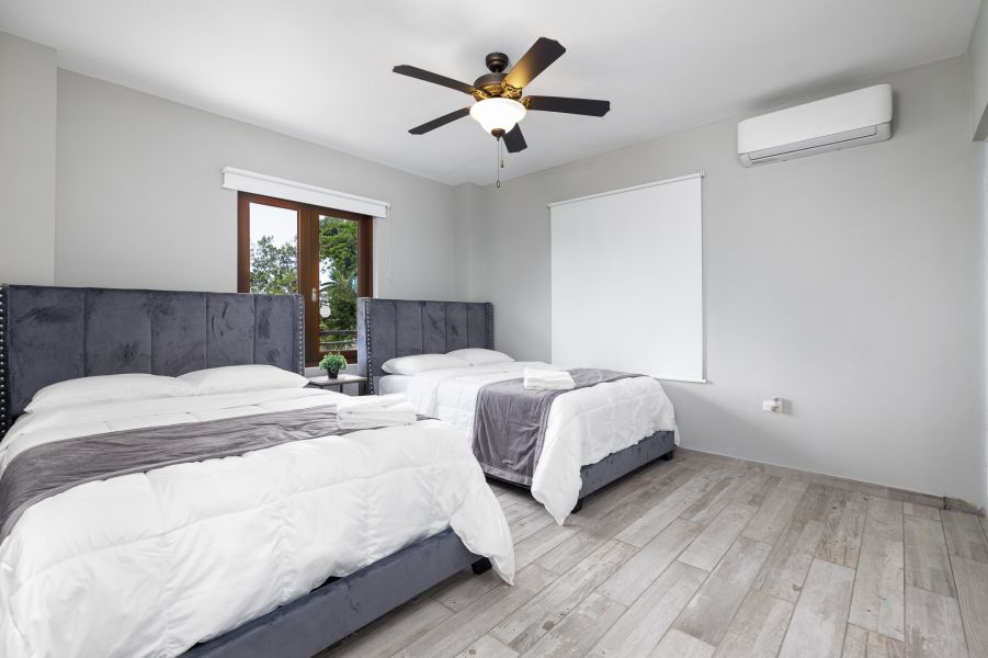 The property has (2) bedrooms, (3) beds and (2) bathrooms. Bedroom 1# has: (1) queen bed and (1) Bathroom, Bedroom #2 has: (2) double beds and (1) Bathroom, The property also has a kitchen, living and dining room, and a wooden deck with an impressive view of the sea with a swimming pool. In addition, the property has a water well.