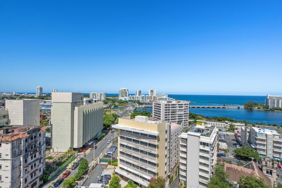El Miramar Condominium has a generator for common areas and provides 2 power outlets in each apartment for emergencies, a full water cistern, gym, and a panoramic rooftop, with 360 jaw-dropping views for residents to enjoy drinks and relax with while watching the sunset. The building is conveniently located near banks, post office, hotels, great restaurants, supermarket, pharmacies, hospitals, schools, Puerto Rico Convention Center, T-Mobile District, and just 5 minutes from Condado and Old San Juan. HOA: $323