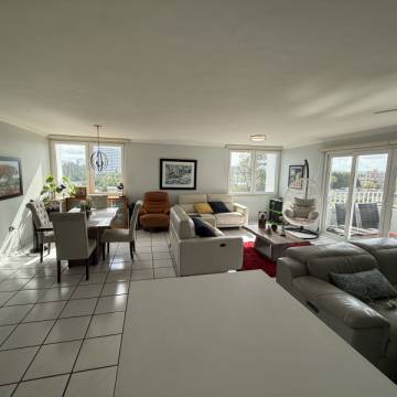 Comfortable and breezy corner apartment with ocean and city views.
