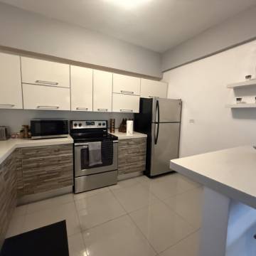 Esta unidad remodelada en la planta superior cuenta con 2 dormitorios amplios, 1.5 baños, y lavadora/secadora dentro de la propiedad. Su diseño de concepto abierto integra sala, comedor y cocina, ofreciendo un espacio cómodo y funcional.