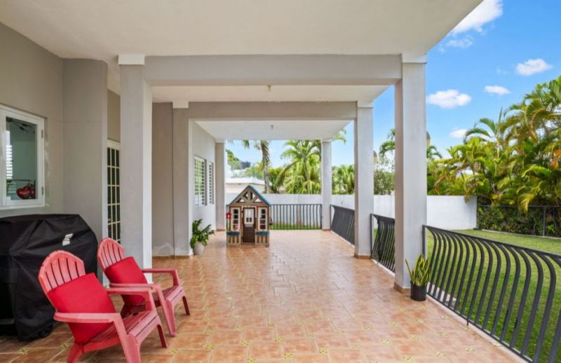 Elegant residence located in the prestigious Árboles de Montehiedra gated community. This property has been expanded to offer 6 bedrooms, 1 "den" and 2.5 bathrooms, featuring a fully remodeled modern kitchen, a spacious terrace, and ample patio. Appliances, generator, and cistern are included. 3,022 sq. ft./570 sq. m. 24 hrs security.