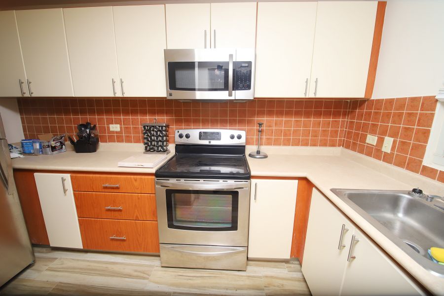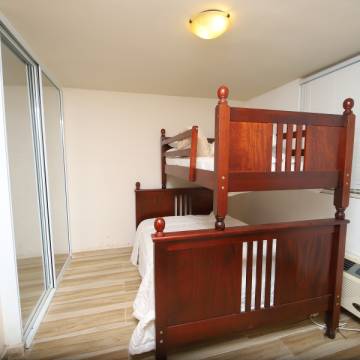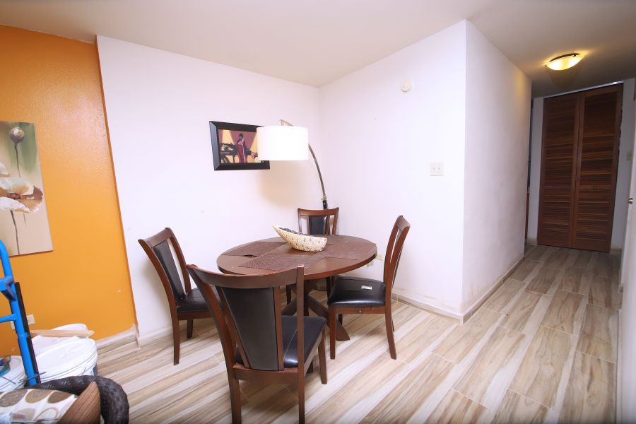 3-story apartment distributed in: 2 bedrooms (12'x12.6', 10'x12.6'), 2.5 bathrooms, living room, kitchen, dining room and terrace with ocean views. Fully furnished and equipped with appliances. Facilities: swimming pool, basketball court and beach volleyball. Airbnb is allowed.