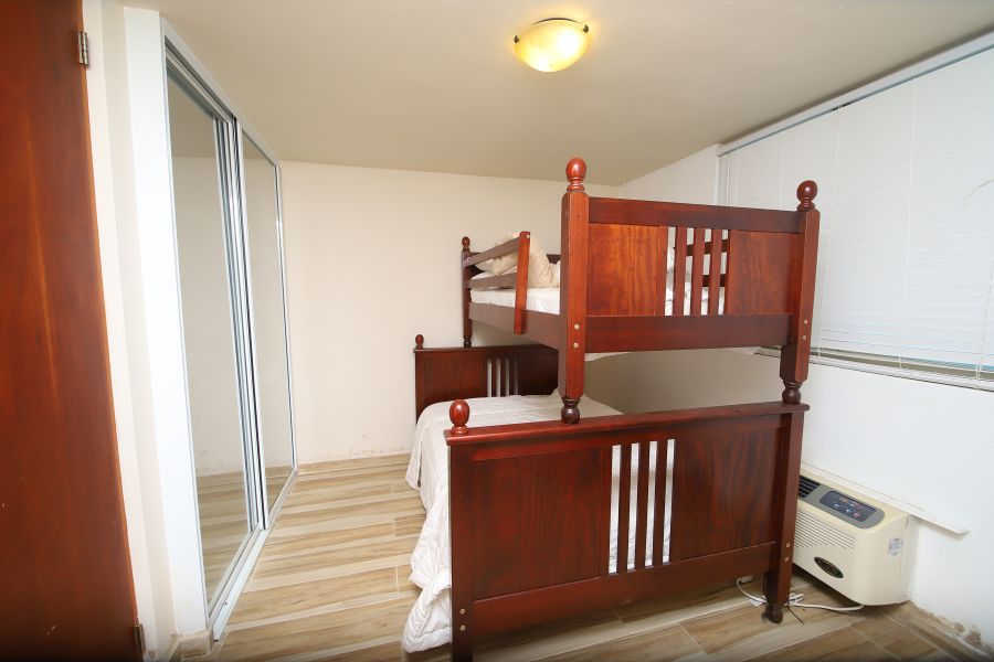 Apartamento de 3 pisos que se distribuyen en: 2 habitaciones (12’x12.6’, 10’x12.6’), 2.5 baños, sala, cocina, comedor y terraza con vistas al mar. completamente amueblado y equipado con enseres. En las facilidades puedes encontrar: piscina, cancha de baloncesto y volleyball playero. Está permitido el Airbnb.
