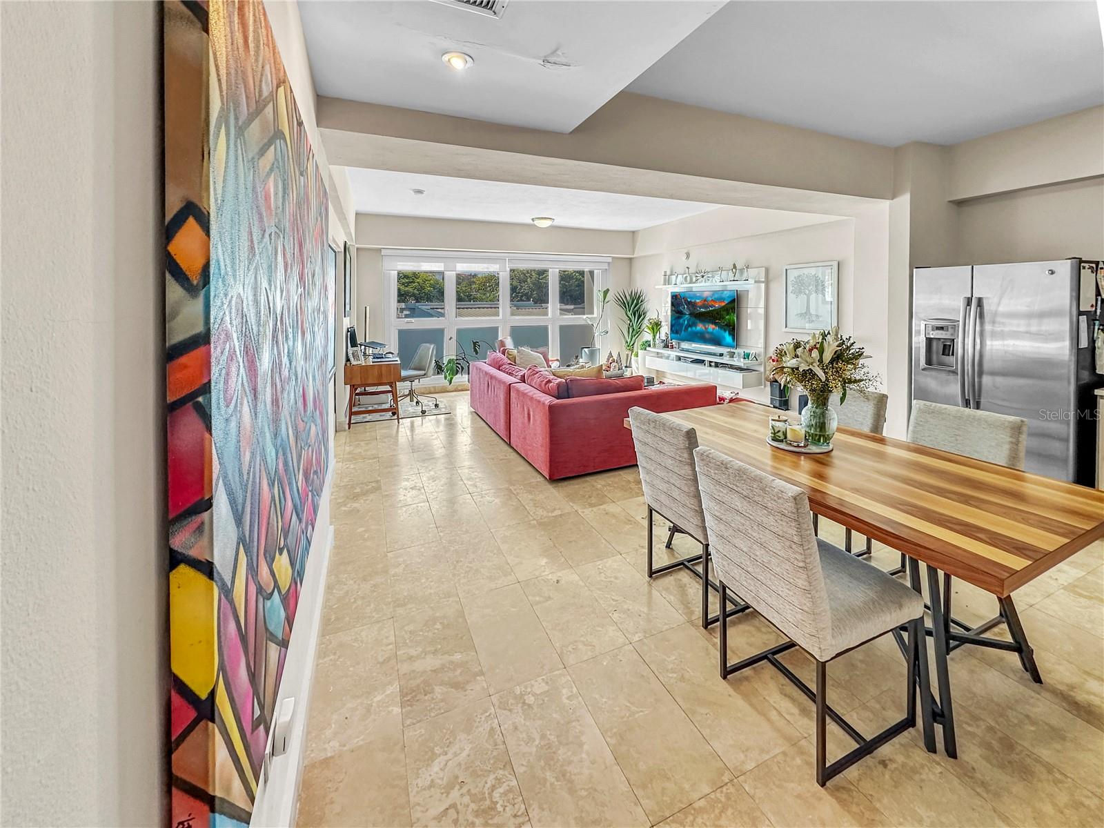 Spacious and modern condo in Wilson Lofts, offering an open layout designed for comfort and functionality. This 1-bedroom, 2-bathroom unit features a walk-in closet, a separate laundry room, and two covered parking spaces, including a private electrical car connection. The kitchen comes equipped with high-end cabinetry and appliances, creating a sleek and practical space.