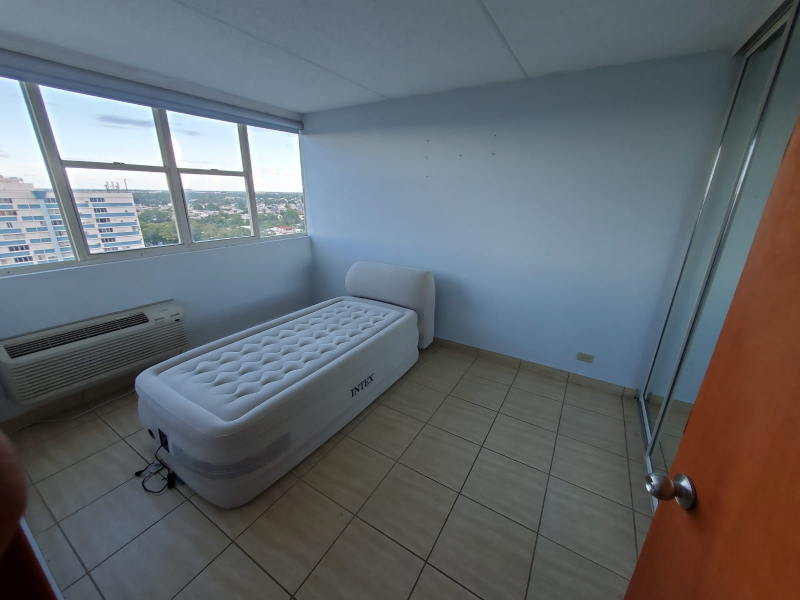Spacious 3 bedroom and 1 bath apartment located a short drive from the airport, located on the 11th floor with a great view of the San Juan bay. Air conditioning in the two main bedrooms. Gated complex with two parking spaces for the property in front of the building. Complex has a pool area and playgrounds.