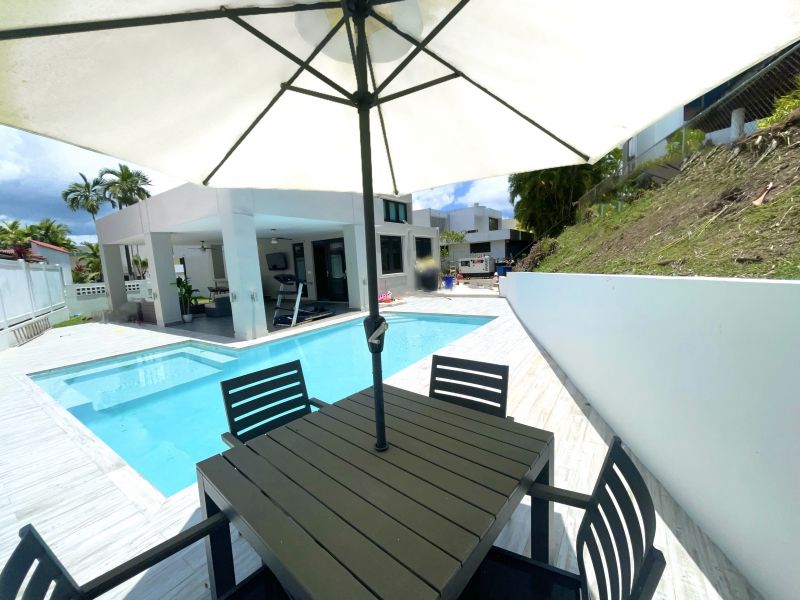 Modern residence with privileged location in Mansiones Reales, Guaynabo. This completely remodeled home features 4 bedrooms, office and 2.5 bathrooms. Kitchen with quartz countertop, marble floors, terrace and pool. Property features solar panels, generator and water cistern. 2,077 sq. ft/574 sq. m Just minutes away from hospitals, supermarket, pharmacy and main highways, Security 24hrs a day. Sale price based on recent appraisal.