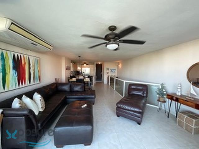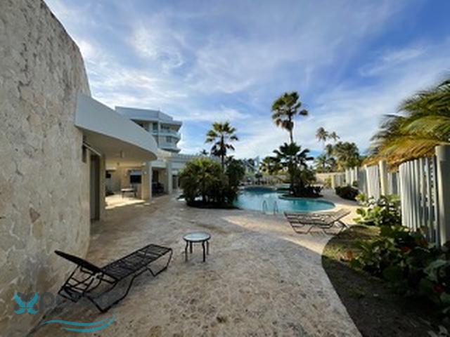 "Spectacular second floor apartment in exclusive Grand Bay Beach Club Condominium in Rio Grande, Beach front, next to the St. Regis Bahia Beach Resort and The Saint Regis Bahia Golf Course. It consists of two large bedrooms, a master bedroom with large bathroom and jacuzzi, spacious closet in the hallway, a second bedroom with large bathroom and laundry room. On the main level, living room, dining room, fully equipped kitchen, a third bathroom and a large balcony overlooking the sea, fully furnished ready to move in, includes new air conditioners, elevator, two parking spaces, one indoor and one in front of the apartment, storage room, water tank and generator for the entire apartment, 24 hour security guard, security cameras throughout the complex. It also has recreational facilities including swimming pool, direct access to the lovely beach.