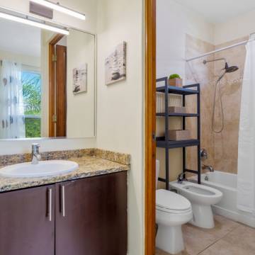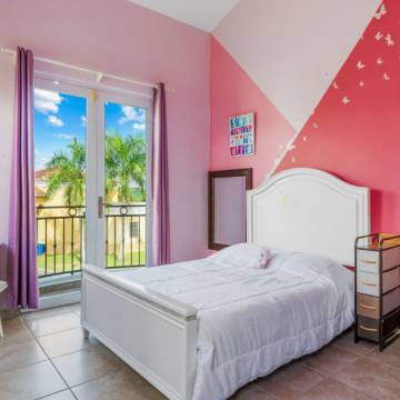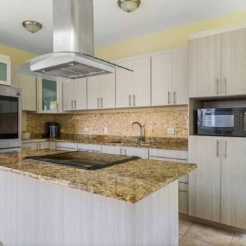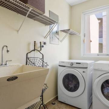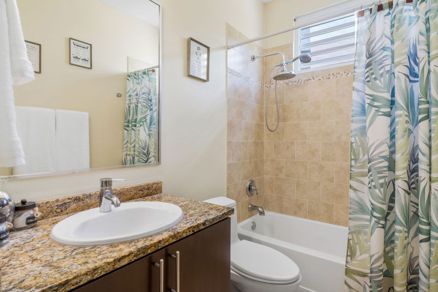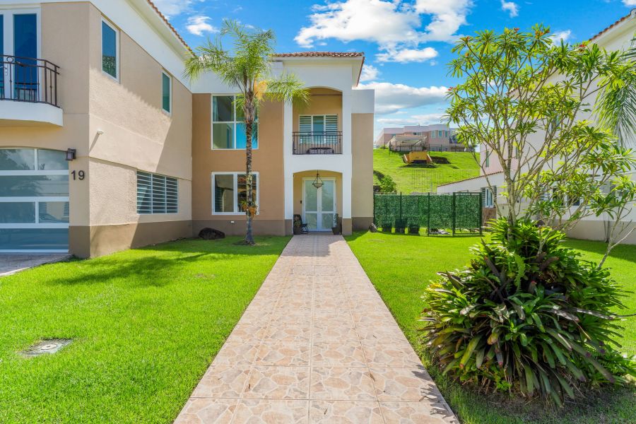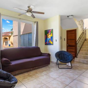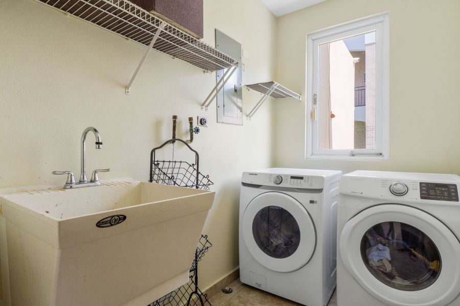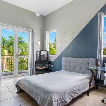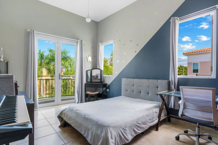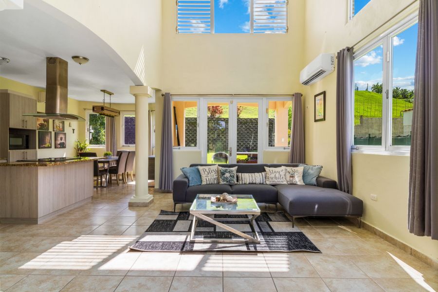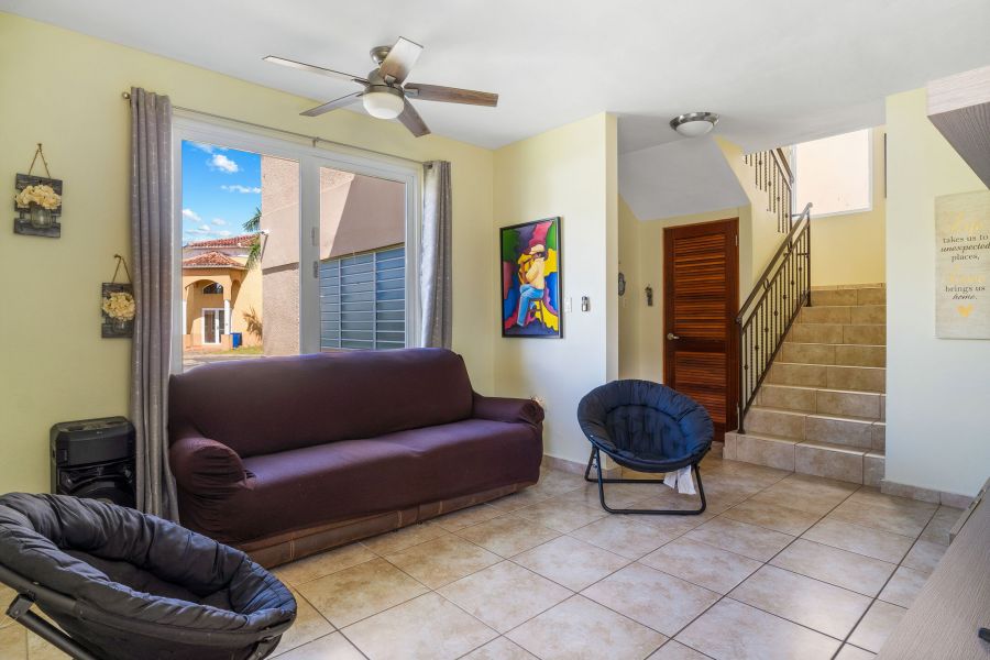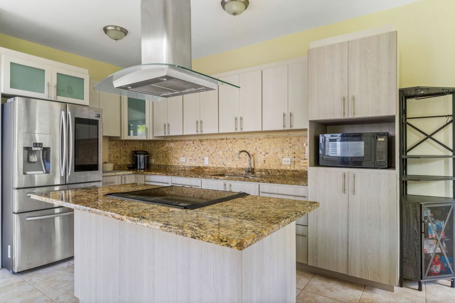 Esta hermosa propiedad de techos altos y amplia iluminación natural cuenta con dos niveles, 4 habitaciones y 3 baños, es perfecta para una familia multigeneracional, porque cuenta con una habitación y un baño en el primer nivel. La primera planta es de concepto abierto, perfecto para recibir familiares y amigos. La cocina incluye modernos gabinetes, topes de granito, una isla con estufa de tope de vidrio y una moderna campana de ventilación. En este nivel se encuentra también el cuarto de lavandería con un fregadero y espacio para los productos de limpieza.