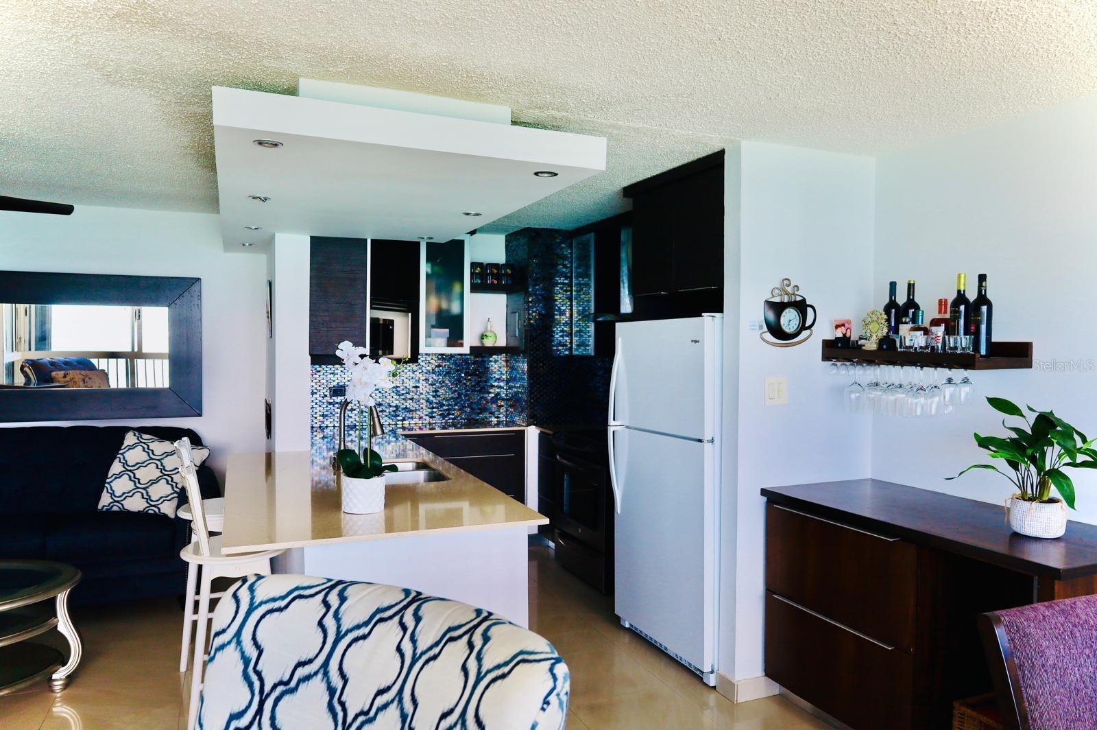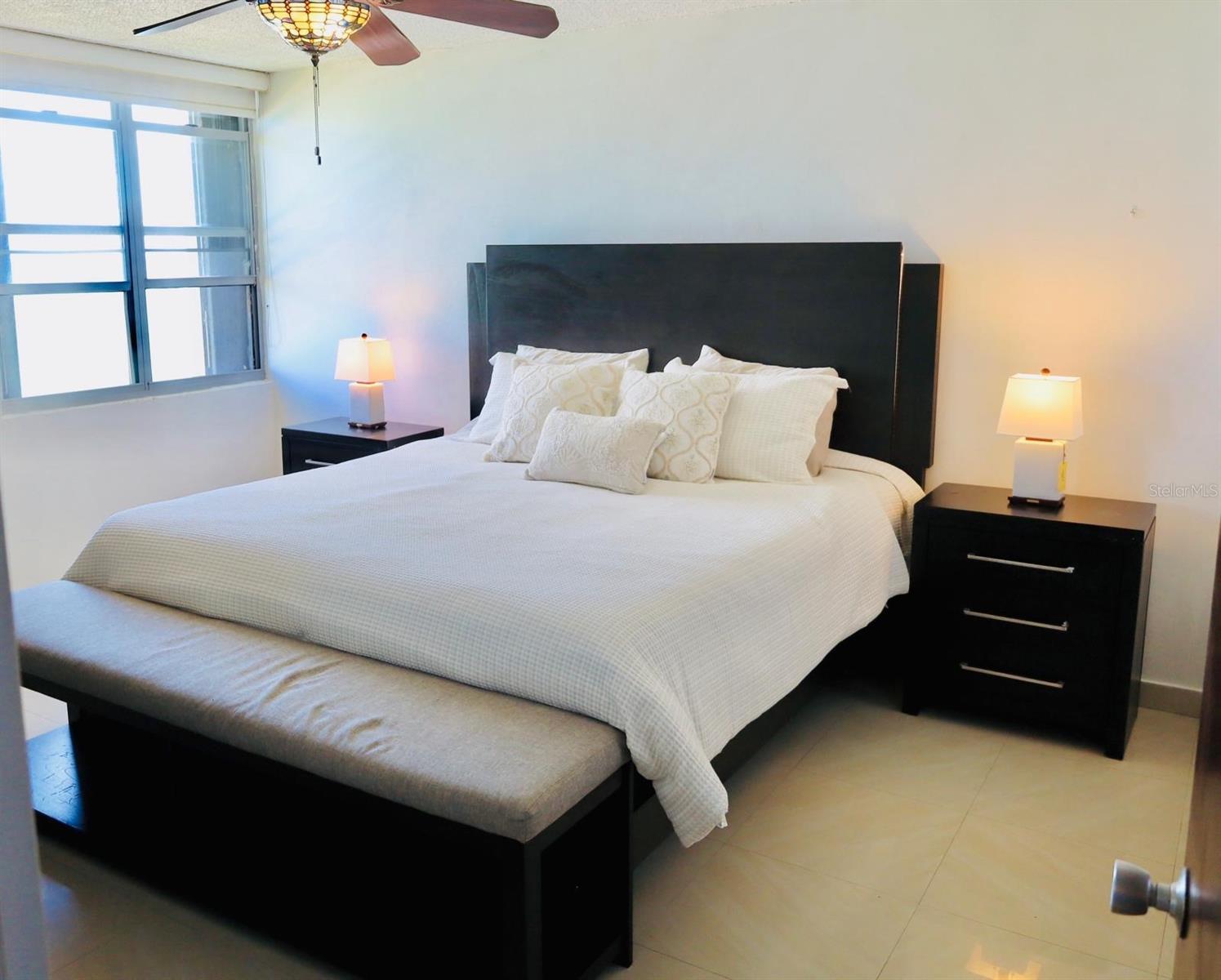 Step into a bright, sun-filled space featuring an open-concept living room, dining area, and kitchen—perfect for both entertaining and relaxation. Floor-to-ceiling windows showcase the crystal-clear waters of Isla Verde Beach. The master bedroom boasts two closets, while the second bedroom offers ample space and comfort.
