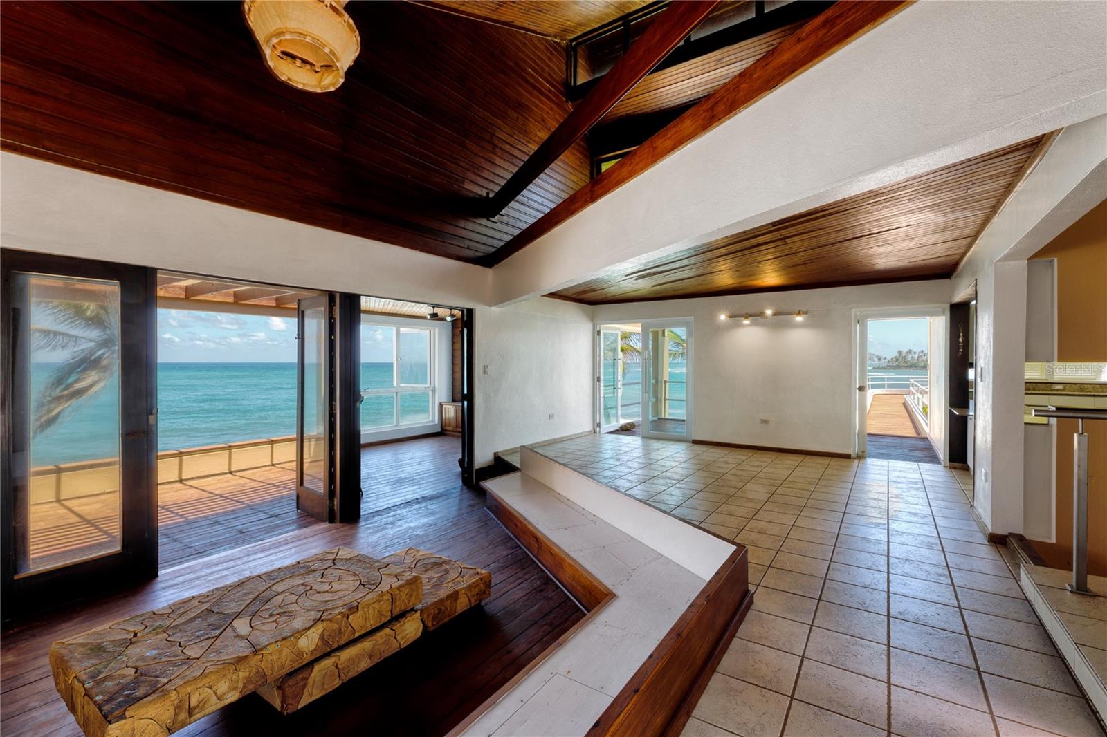 Enjoy unmatched panoramic views and direct beach access from this one of a kind home. Originally designed and conceived in 1978, by renowned architect Segundo Cardona. In 2006, the home received the American Institute of Architects' Test of Time Award. The structure is also known as the House at Brenas Point, the two-level property provides a clean open space with a wonderfully serene aesthetic that serves as the perfect setting to create your ideal home with all of the modern amenities it calls for. The current structure is enriched by wooden accents throughout and a tranquil ambience surrounded by the sea on all sides. Currently two bedrooms and two bathrooms, as well as a spacious kitchen, double-height great room, north-facing sunroom, balcony and multiple decks overlooking the water from different vantage points. 70 Brenas Estate is truly a rare and treasured find that offers potential owners the unique opportunity to create a 21st Century residence with grand cultural and historic significance. Vega Alta, is a coastal beach town located on the northern coast of Puerto Rico. The area is known for its stunning white sand beaches and forest filled with diverse flora. The region is also home to numerous well known restaurants. Only 10 minutes away from Dorado Beach and all of the amenities it has to offer such as top golf courses, spa sanctuary, fitness center, biking trails and water sport facilities. A 45-minute drive away from San Juan.
