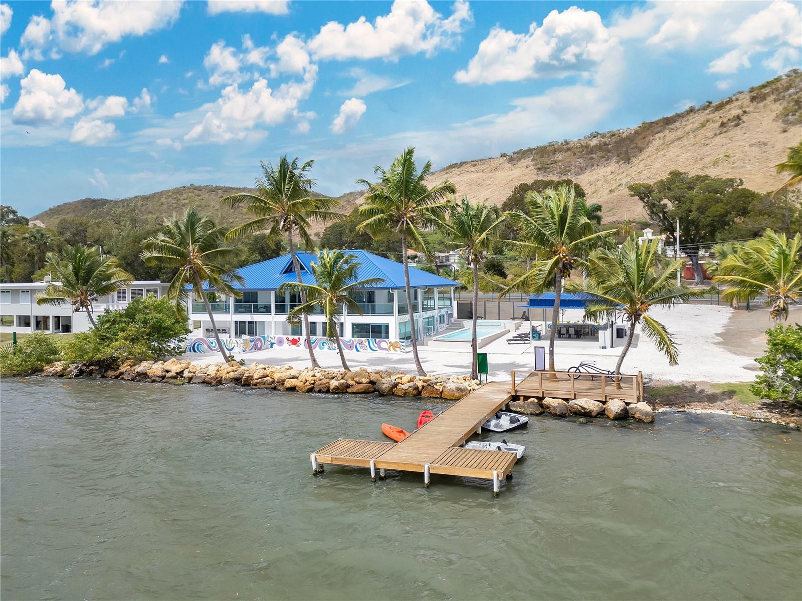 Welcome to this stunning, fully remodeled property in Guánica, ideally located at the entrance of Playa Santa. Formerly known as Restaurante La Vinera, this two-story residence has been completely renovated, from plumbing to electrical systems, and is now a modern, fully furnished retreat. With 6,000 sq. ft. of space on a 2,137 m² lot facing the beautiful Bahía de Guánica, this home is perfect for a private residence or a Airbnb investment accommodating up to 40 guests. The first floor features four bedrooms, two bathrooms, a spacious kitchen and dining area, a family room, and an indoor mezzanine with 10 beds, along with a pool table for entertainment. The second floor offers four interconnected studio apartments, each with a private bathroom, a shared kitchen, and a game room, also accommodating up to 20 guests. The outdoor area is a true paradise, boasting a private dock, a boat and jet ski ramp, a pool and jacuzzi, an electric vehicle charging station, a 60kW power generator, a 1,000-gallon water cistern, and a gazebo with a fully equipped outdoor kitchen, including a BBQ and freezer. Located in a peaceful and picturesque setting, this property is a rare opportunity to own a luxurious waterfront escape in one of Puerto Rico’s most desirable coastal locations. Coordinates: 17.972723,-66.926323