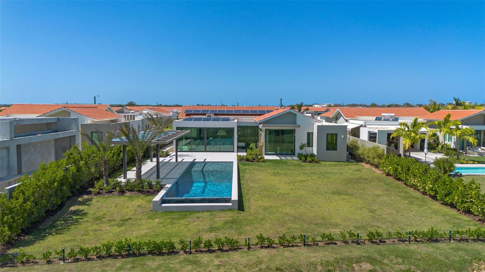 This stunning 5-bedroom, 5.5-bathroom residence is located in the exclusive community of Sabanera de Dorado. With 5,500 SQ. FT. of construction on a 1,350 SQ. MTS. lot, this property offers a perfect blend of elegance, comfort, and sustainability.