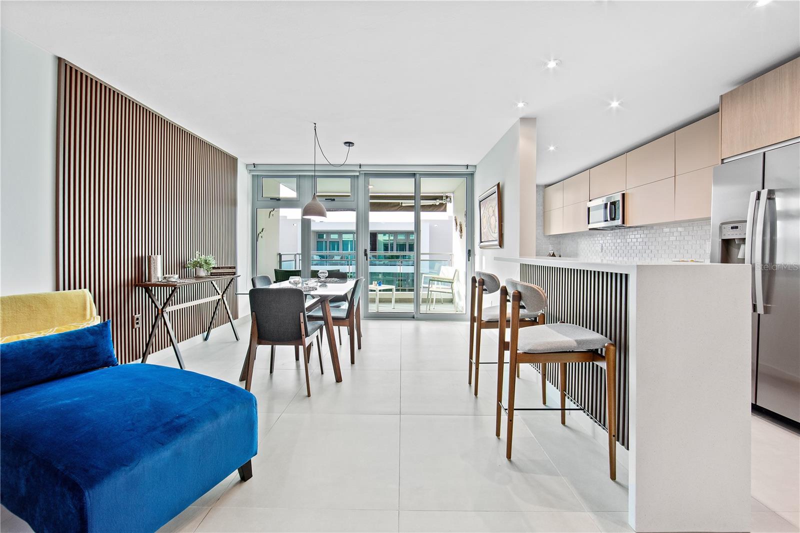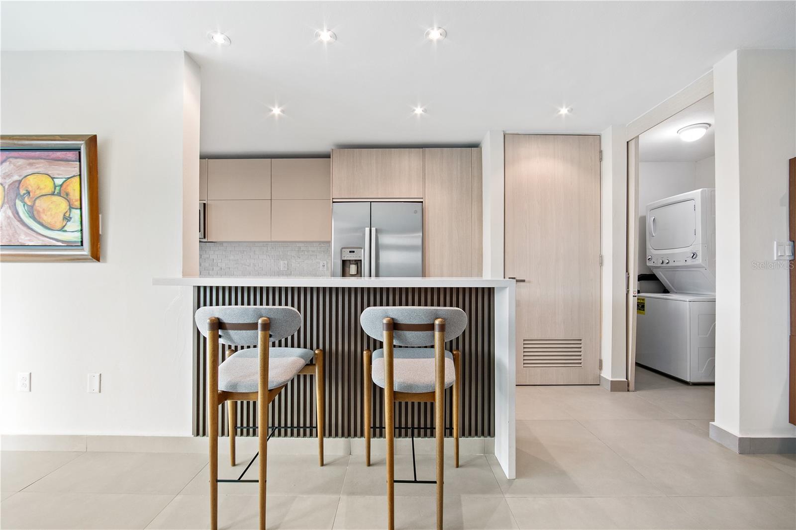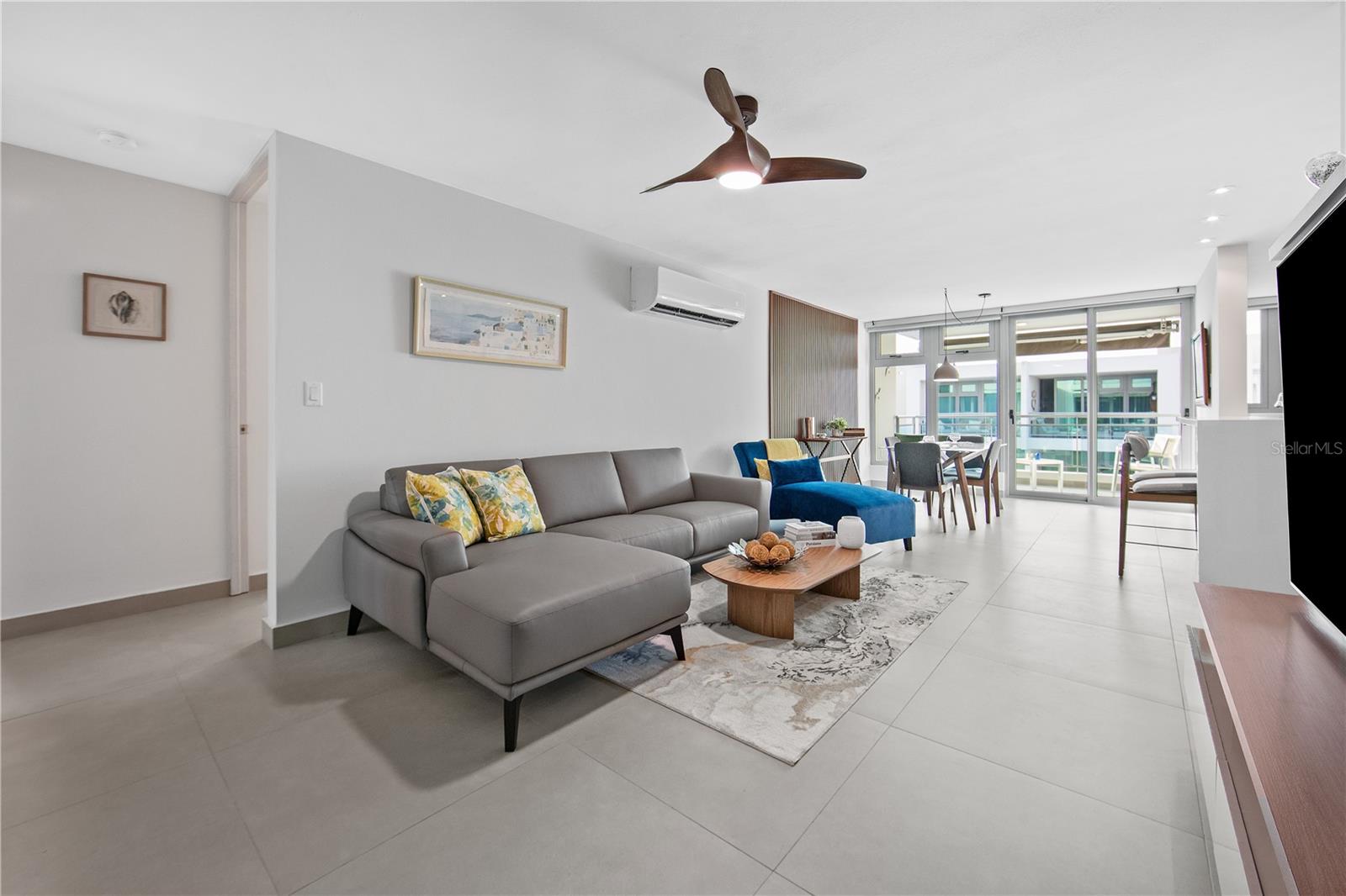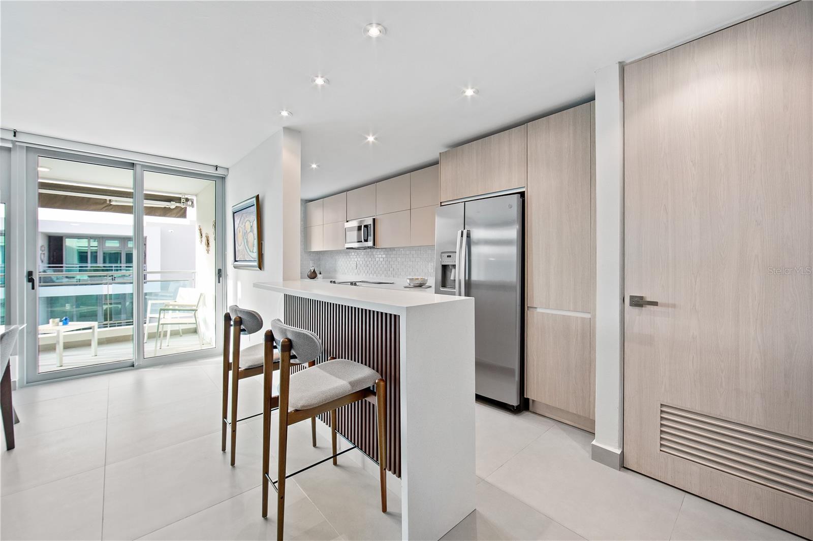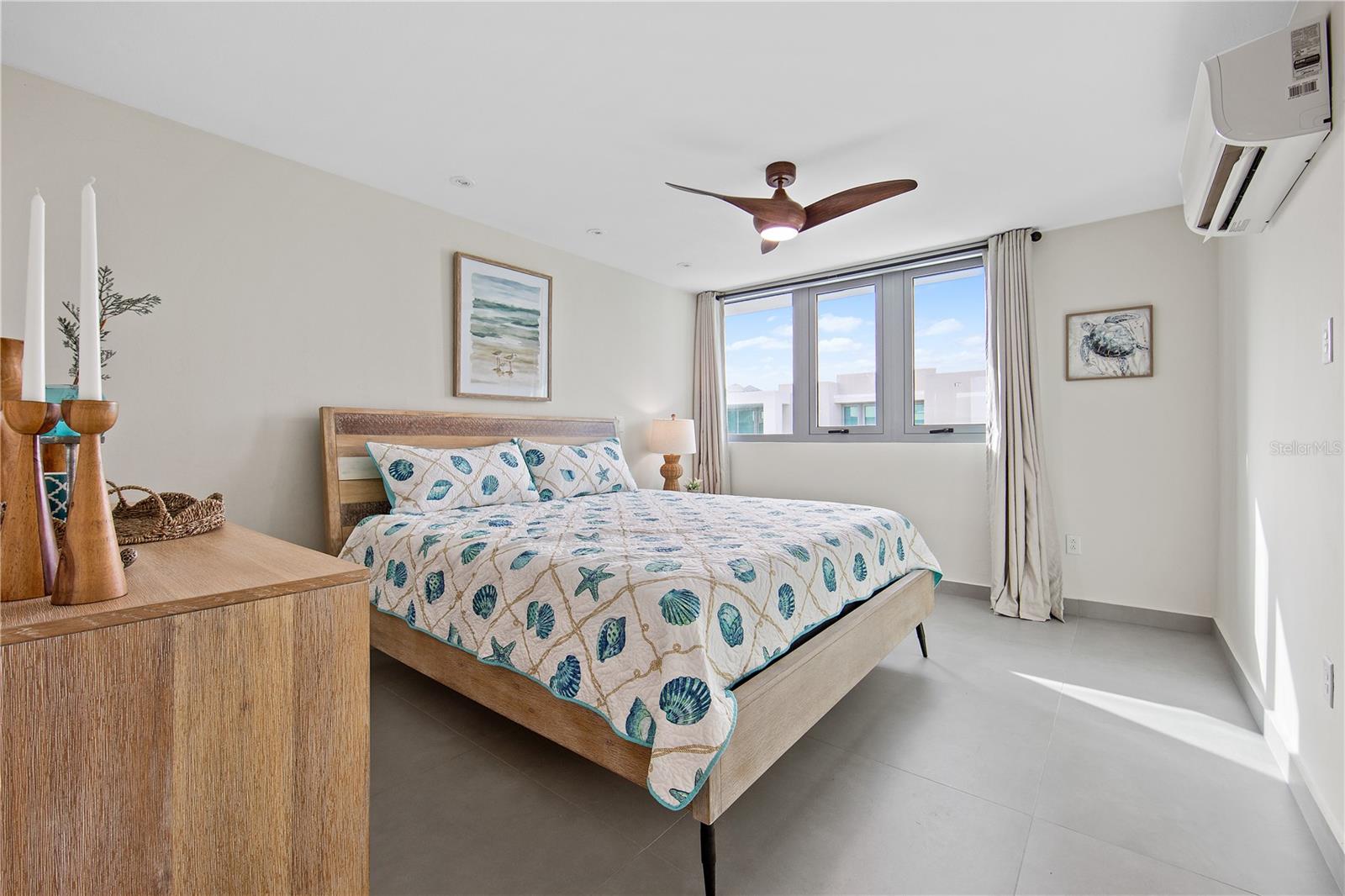 Just a short hop from Isla Verde's lively beach scene, this stylish apartment stands out for its thoughtful upgrades, breezy design, and easygoing island character. Located in a new condominium completed just two years ago by a respected local developer, the home has recently been enhanced with refreshed bathrooms, subtle kitchen improvements, and design-forward furnishings that reflect the island’s relaxed elegance. The interiors embrace a palette of soft blues, sun-washed neutrals, and modern textures; coastal with a sleek, contemporary twist.