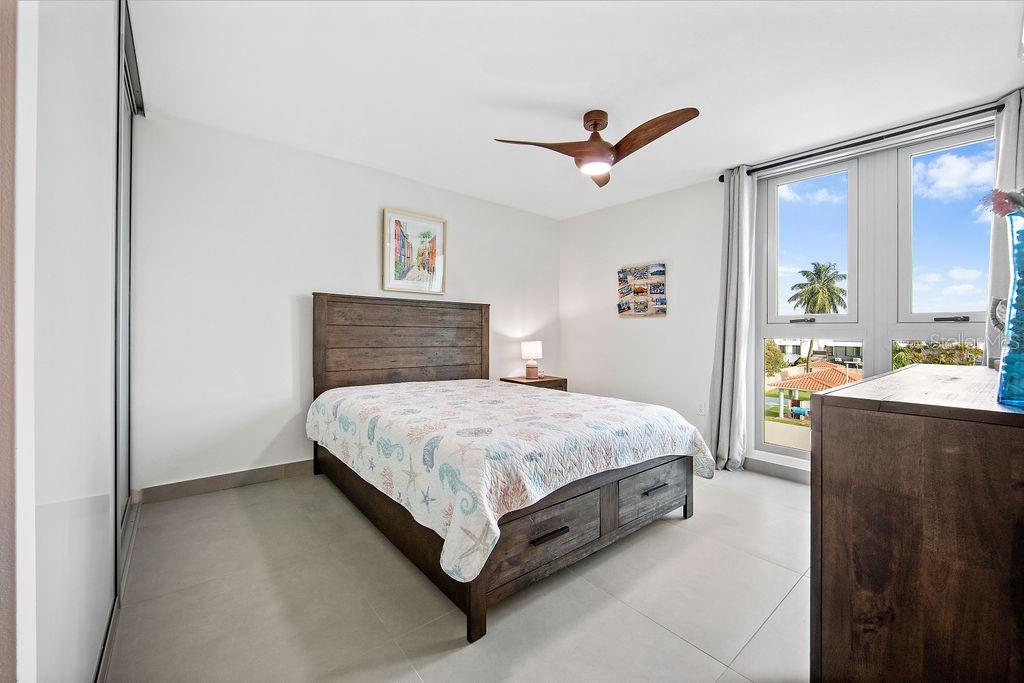 Though the complex sits just across the main thoroughfare from the beach, its location delivers the best of both worlds, moments from the Isla Verde shoreline and just a couple of minutes from the San Juan International Airport. Two conveniently placed parking spaces make coming and going effortless, while full-building backup systems -a generator and water cistern- ensure uninterrupted island living, no matter the weather. The grounds themselves feel like a private resort, complete with multiple sparkling pools, a sleek fitness center, a vibrant playground, and even a dedicated dog park, all secured by 24/7 guarded access.