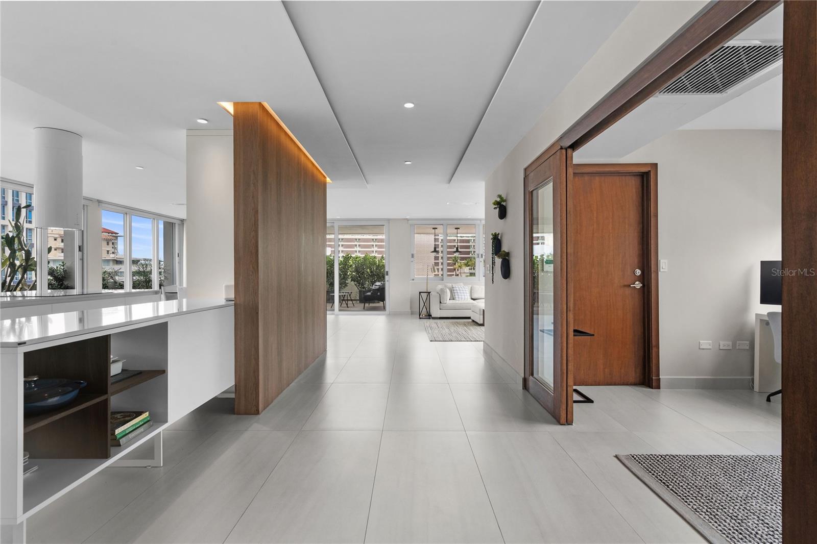 Discover unparalleled luxury in the heart of Condado with this exquisite penthouse at Condado Towers, San Juan, Puerto Rico. Spanning an entire floor, this immense 4,209-square-foot residence offers four bedrooms and three bathrooms, designed to capture the essence of elegance and contemporary living. Recently renovated by the esteemed Redondo Benetti Design, the penthouse boasts water views of the ocean and Condado Lagoon. Every detail has been meticulously crafted, from custom automated shades to accent paneled walls, ensuring a sophisticated living experience. Expansive windows flood the space with natural light, enhancing the open floor plan that seamlessly connects the living, dining, and kitchen areas. The chef’s kitchen is a centerpiece of modern design, featuring a large island, sleek countertops, high-end appliances, and custom cabinetry. It is perfect for entertaining, with ample seating and a seamless flow to the dining and living areas, all while offering views of Condado and its beaches. The primary suite is a private sanctuary, complete with a vanity area, a spacious walk-in closet with custom built-ins, and an en-suite bathroom featuring a large walk-in shower and separate bathtub. Each bedroom provides a serene retreat with generous proportions, ample closet space, and city or ocean views. This residence is designed for the ultimate indoor/outdoor lifestyle, featuring two terraces with over 700 square feet of private outdoor space. Enjoy the ideal year-round weather with direct access to these terraces from expansive floor-to-ceiling glass doors. Additional features include a den/office with sliding doors, a large storage room, a one-car garage, and direct elevator access to your residence. Located within walking distance of world-class restaurants, boutique shopping, and top-rated schools, this penthouse offers the best of both tranquil ocean views and vibrant city living. Experience the perfect blend of contemporary design and timeless luxury in this extraordinary Condado Towers penthouse. Also offered for sale at $2,995,000