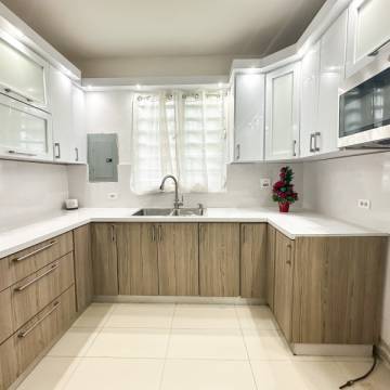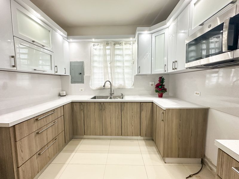 For Sale: Modern two-story house, designed by Mora Deveolpment. This spacious four bedroom, two and a half bath property is located in Bo. Santa Rosa III, and is the perfect hideaway from the hustle and bustle of the city of Guaynabo, while still only minutes away from Plaza Guaynabo, Costco and the Martinez Nadal highway. The 2,012 sq.ft. house is located on a 1,184m2 lot, with room to add the pool of your dreams and an outdoor living area. The backyard has views of the Bayamón river below, and is situated in a quiet neighborhood. AirBnb and short term rentals allowed! The kitchen was recently renovated with PVC cabinets and recessed lighting. The beautiful home has high ceilings throughout the house, modern bathrooms, spacious living areas, a laundry room, an office space on the second floor, 4 large bedrooms, a walk-in master closet and a large master bathroom. The Guaynabo experience with the space and liberty of being in the countryside! Cash sale or conventional loan only. Not subject to appraisal. ¡Call for appointments!