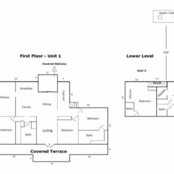 La propiedad cuenta con 1 cuerda de terreno y tiene 3 unidades en total, distribuidas en 2 niveles. La casa principal tiene 1,944 pies cuadrados, con 3 cuartos, 2 baños y marquesina para 1 auto. Detrás y debajo de la casa principal hay dos apartamentos de 1 cuarto, 1 baño y cocina, uno de 362 pies cuadrados y otro de 345 pies cuadrados. Estas dos unidades necesitan reparación.