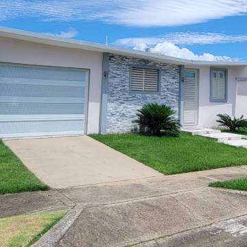Casa terrera con excelente ubicación y remodelada. Consta de 3 habitaciones/ 2 baños, sala, comedor, cocina, family, laundry, marquesina para 2 autos y patio. El cuarto master cuenta con w/c y baño espacioso. Incluye enseres, puertas y ventanas de seguridad, a/c en los cuartos y sala, cisterna, calentador solar, puerta de garaje, tratamiento de techo y otros extras como transfer switch, surge protector y lámparas. También se incluye mantenimiento del patio. La urbanización cuenta con un Parque con facilidades recreativas: cancha de baloncesto y tenis, gazebo, parque para caminar y parque para niños. Tienes que verla!